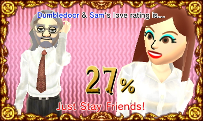 This week Dumbledore and Sam have gotten together. Dumbledore actually started the conversation by saying that he thinks Sam has a crush on him. Out of the options I told him to go for it and now they are together! I hope that they are together for a long time as I would like to see their children.